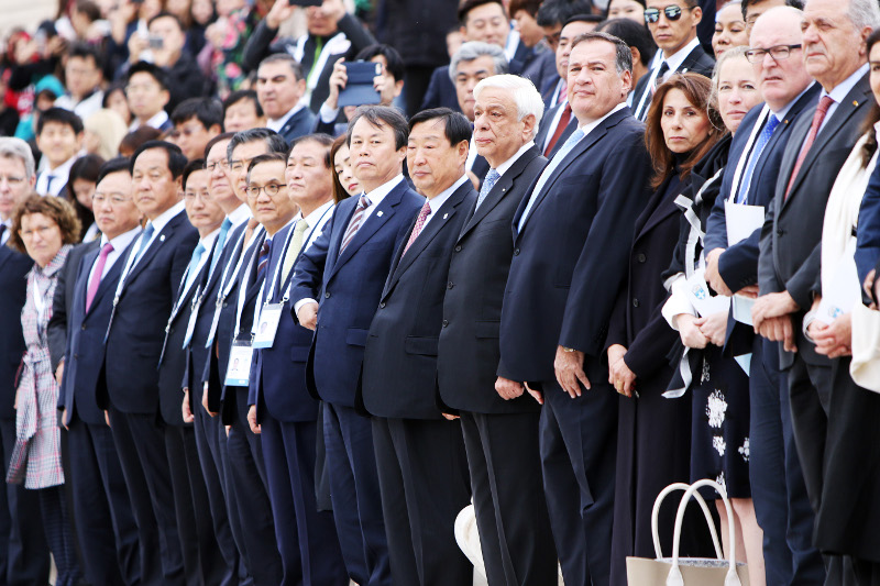 Η Τελετή Παράδοσης της Ολυμπιακής Φλόγας ξεκίνησε στις 11.00 το πρωί, με πολιτιστικά δρώμενα, τόσο της Ελλάδας όσο και της Νότιας Κορέας.